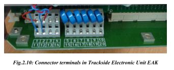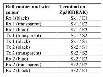 The connections of integral cables of rail contacts to the terminals of EAK are as given below: