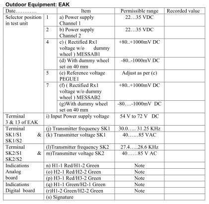 The frequency of the transmitter heads are to be measured by true RMS Multimeter only. For this purpose additional probe set is provided with Tool Kit ETU001. These readings can be taken at connector terminals S1 & S2 of both Sk1 & Sk2 inside EAK.