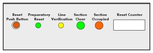 ERBM-02 is the reset box for AzLM Multi Section Digital Axle Counters. It provides the basic resetting pulse (24VDC) for 3 seconds (approximately) to ACE to reset a particular section. The front panel of the terminal consists of: