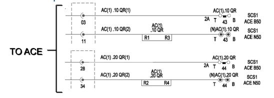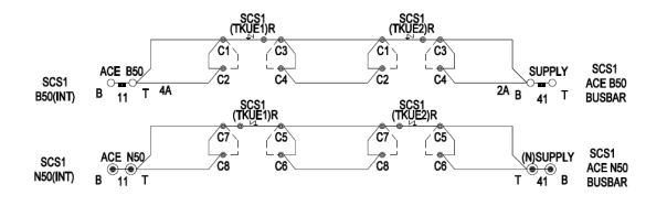 All ACE output relays are powered from the ACE B50/N50 busbar, so that if the ACE is faulty, all the ACE output relays are de-energised