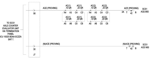 For each axle counter block, the ACE energises two relays, .10 QR and .20 QR, both of which must be in correspondence to prove that the block is clear.