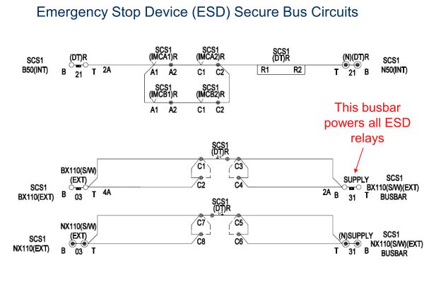 •The (DT)R relay causes the ESD busbar (called ‘BX110(S/W)(EXT)’) to be de-energised.
