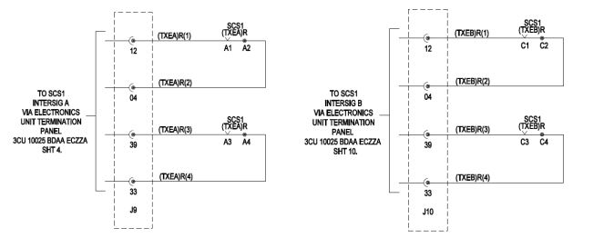 * These circuits enable the correct modem transmission path. (TXEA)R and (TXEB)R are energised directly from the INTERSIG A and B secure bus respectively.