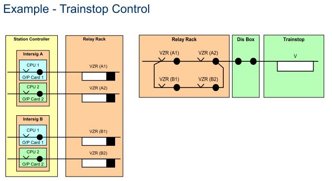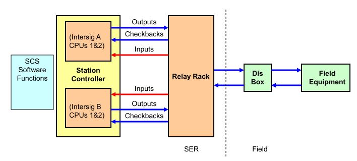 * These outputs are combined on the relay rack, and must be in correspondence to give a permissive output to the field (e.g. to lower a trainstop)