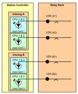 * For vital output functions, both CPUs of the controlling INTERSIG are required to energise separate outputs.